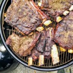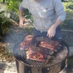 Lately I’ve been making a lot of beef ribs. Using a Weber Smokey Mountain 57cm. I use the snake (minion method) which consists on placing a big empty can in the middle of the charcoal grate, placing unlit briquettes on one side forming a snake of about 270° along the circumference, and then firing up 15 briquettes, then placing them on just one side taking care of using a brick or a thick metal layer to protect the unlit briquettes on one side, so the fire can develop on just one direction.