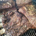Then I keep a steady temperature of 110°C for about 3 hours to allow the hickory wood to develop smoke and permeate the meat. Then it is a waiting game until the meat on the bone does reach 97°C. At that moment we are ready to remove meat from the smoking chamber and place it to rest for an hour or two on a portable mini cooler.